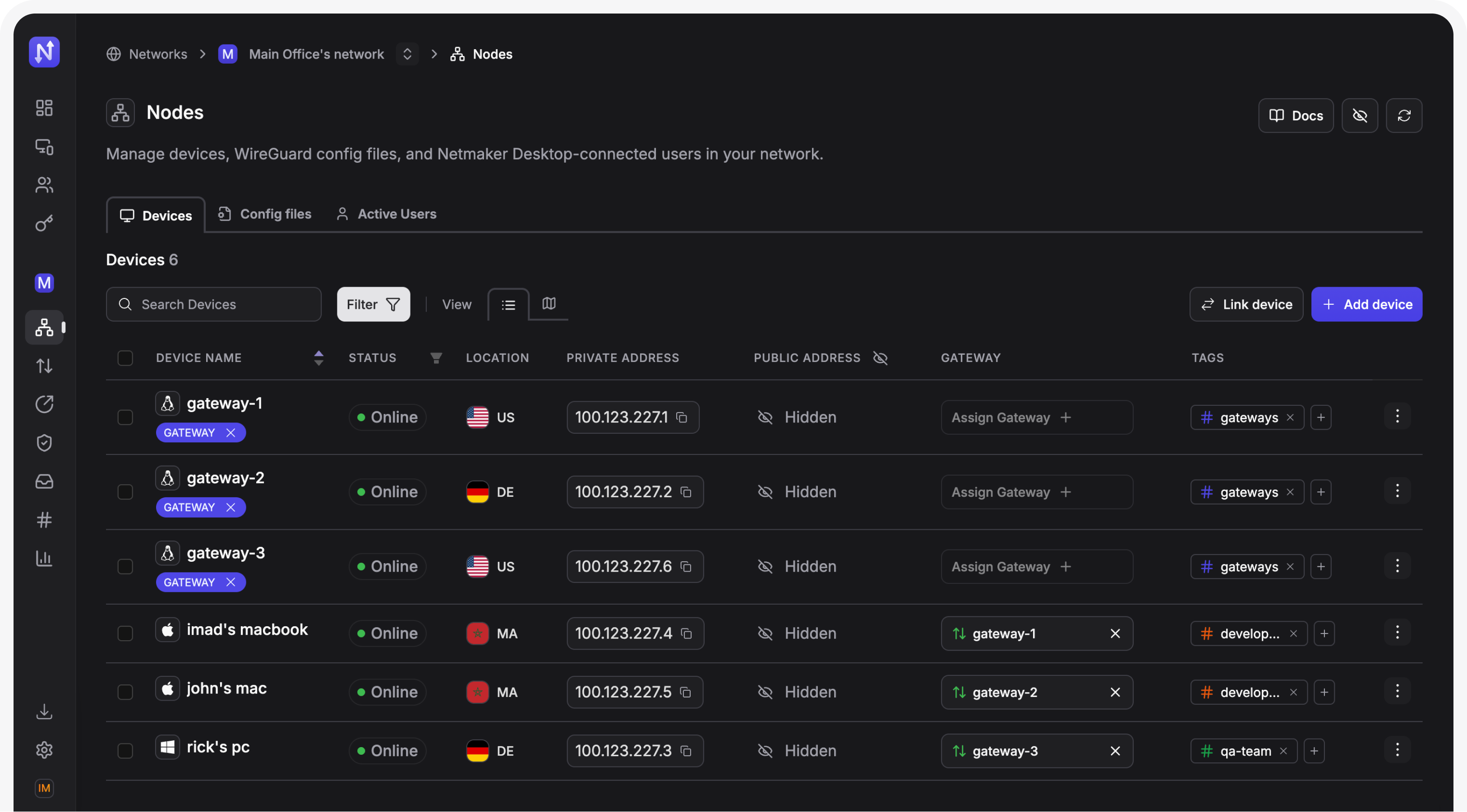 Netmaker's multi-network design lets you create multiple, segmented virtual networks for different use cases, and manage them all in one place.